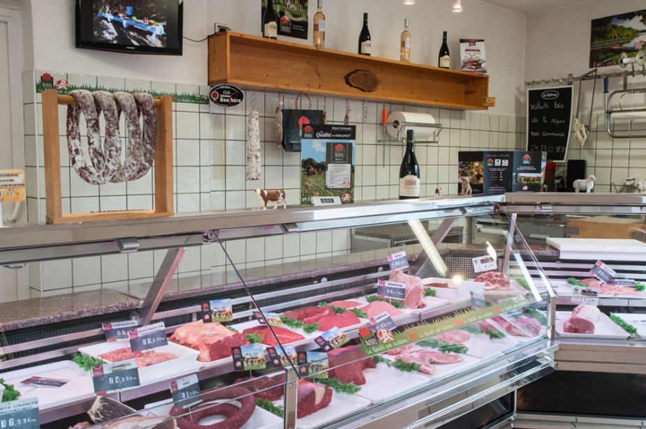 Désormais vous trouverez un rayon boucherie achalandé de pièces de viandes d’origine française : Porc des Combrailles, boeuf